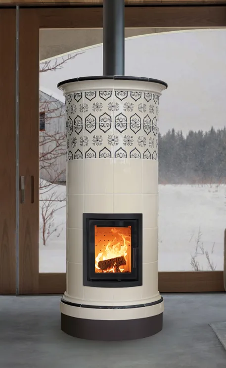 The Armonia series enriches the range of stoves with the new entry Alpina 6 levels, a combination of beauty and technology enclosed in a full circle body of fine ceramic, ideal to be installed in the middle of a room to make the details and colours of our tiles be appreciated from every angle. The space between the combustion chamber and the top of the stove makes room for the Durasic® heat-storage kit and allows you to enjoy the pleasant warmth released by the stove up to 8 hours after the fire is off. Moreover, its high efficiency and low dust emissions (less than 10mg/Nm3) make the stove environmental friendly.