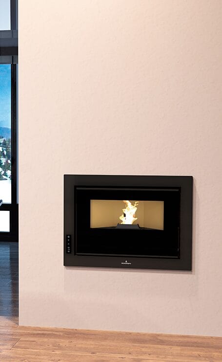 The BRUNO-SLIM pellet insert from Bronpi is only 26.5 cm deep, allowing it to be installed in nearly any space in the home. It includes as stantard a charging kit, height-adjustable legs and a remote control for convenient and easy operation. You can also add an optional Wi-Fi kit to control it from your mobile phone and choose the interior lining material, available in vermiculite or Firetek.