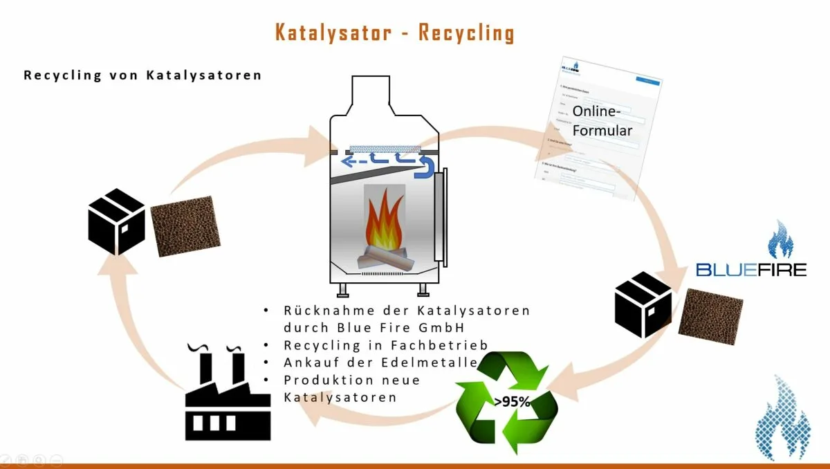 Blue Fire catalysts are integrated into the burning chamber of furnaces and used in fireplaces in whole europe.