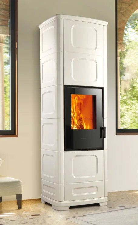 The model, which makes stylish furnishing elements thanks to its refined design, come in two different heights. The taller version (h 193 cm) is suited to housing the optional Heat Storage System kit, which releases heat even several hours after the fire dies out.