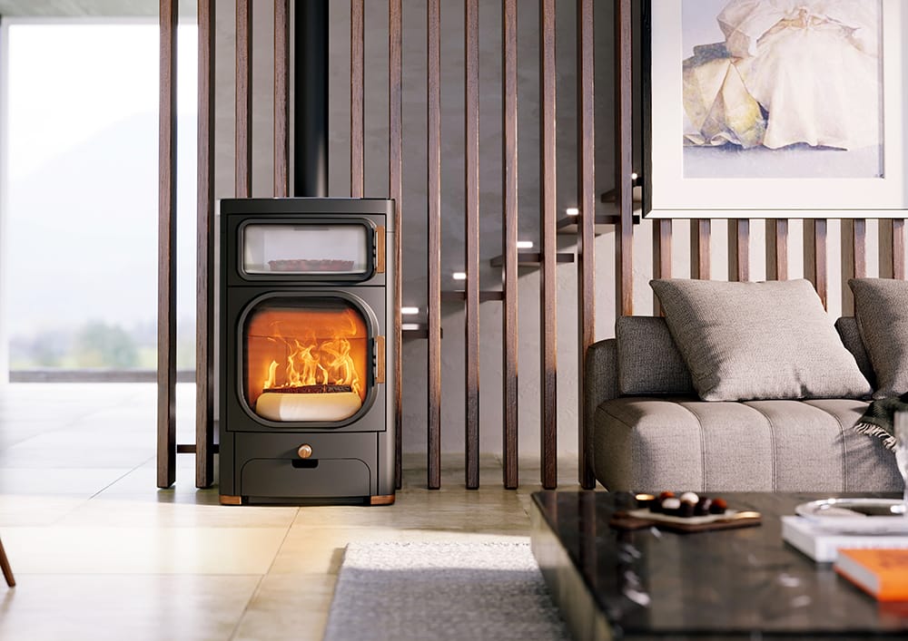 Heidi is more than a stove: it’s a true multifunctional solution for heating and cooking with style. The wide, continuous Neoceram top keeps food warm in a practical and elegant way, while the integrated baking compartment allows for simple, natural cooking. The solid, well-proportioned cast iron door offers a full view of the flame, adding atmosphere to the room. With the optional Air+ system, airflow is managed automatically to ensure optimal, worry-free combustion. Compact, functional, and finely crafted: Heidi Back is the perfect balance of warmth, cooking, and design. Environmental rating: 5 stars.