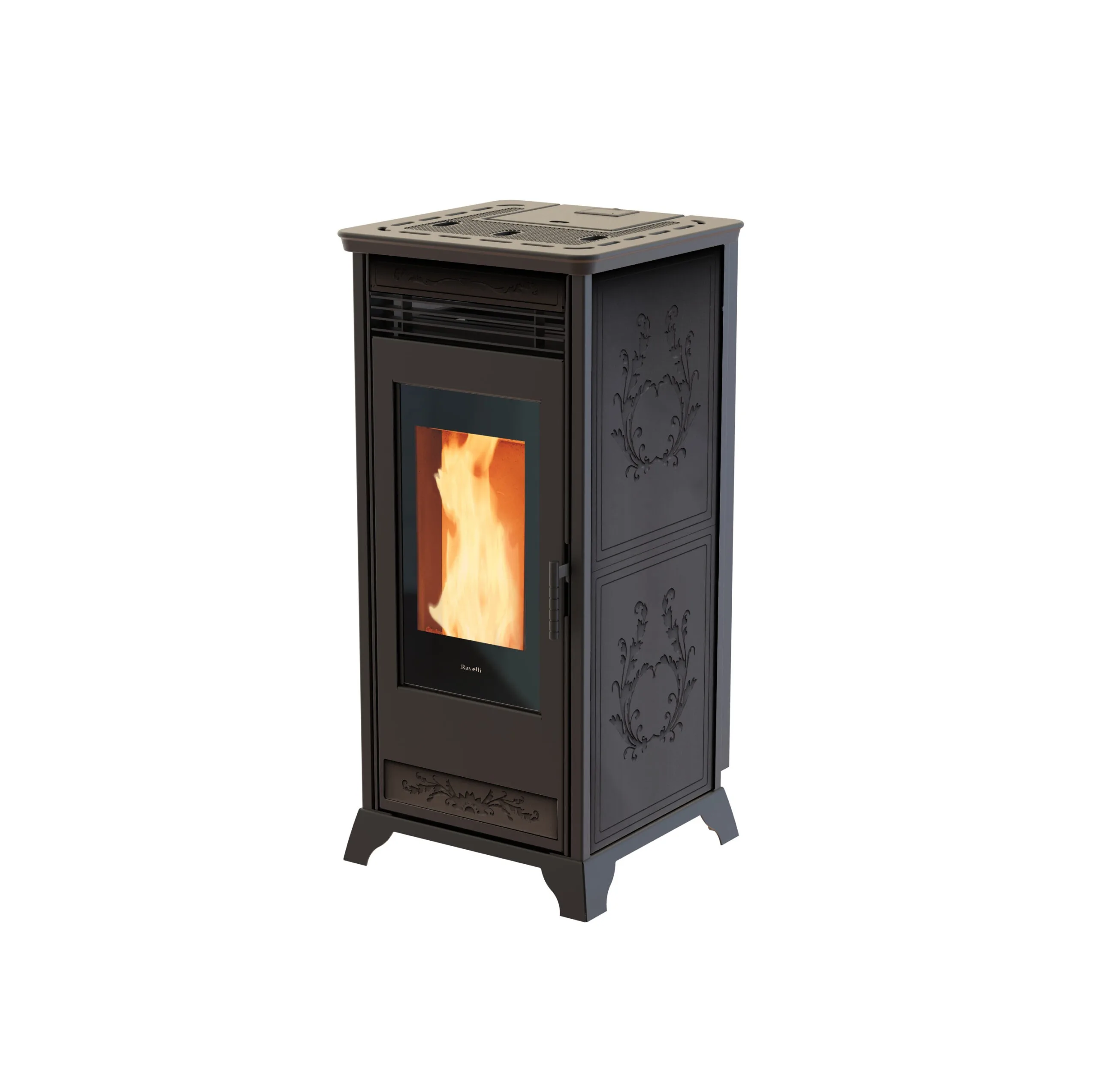 The operation of the stove is optimized thanks to the use of a temperature probe in the combustion chamber which allows electronic control to react in a timely manner in the transitional phases.