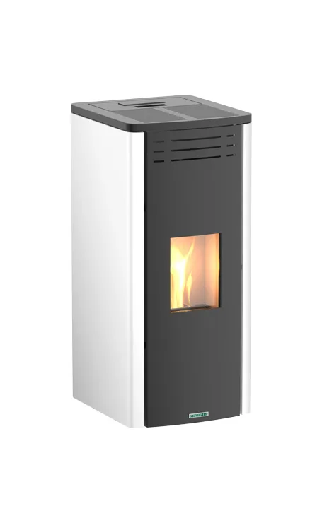 Pellet stove covered in steel with simple and classic lines. Equipped with a blown self-cleaning system that guarantees constant combustion efficiency.