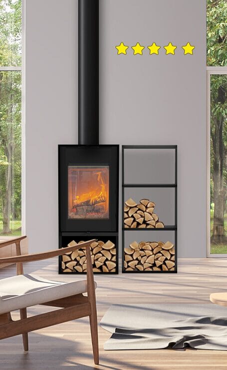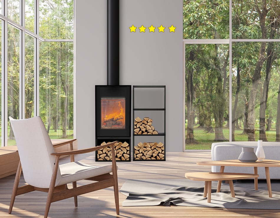 Contemporary design and high efficiency come together in this 5-star certified wood stove…