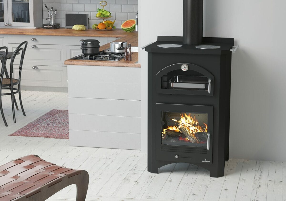 The Monza stove by Bronpi is a wood-burning stove with an oven and cooking zone, with cast iron…