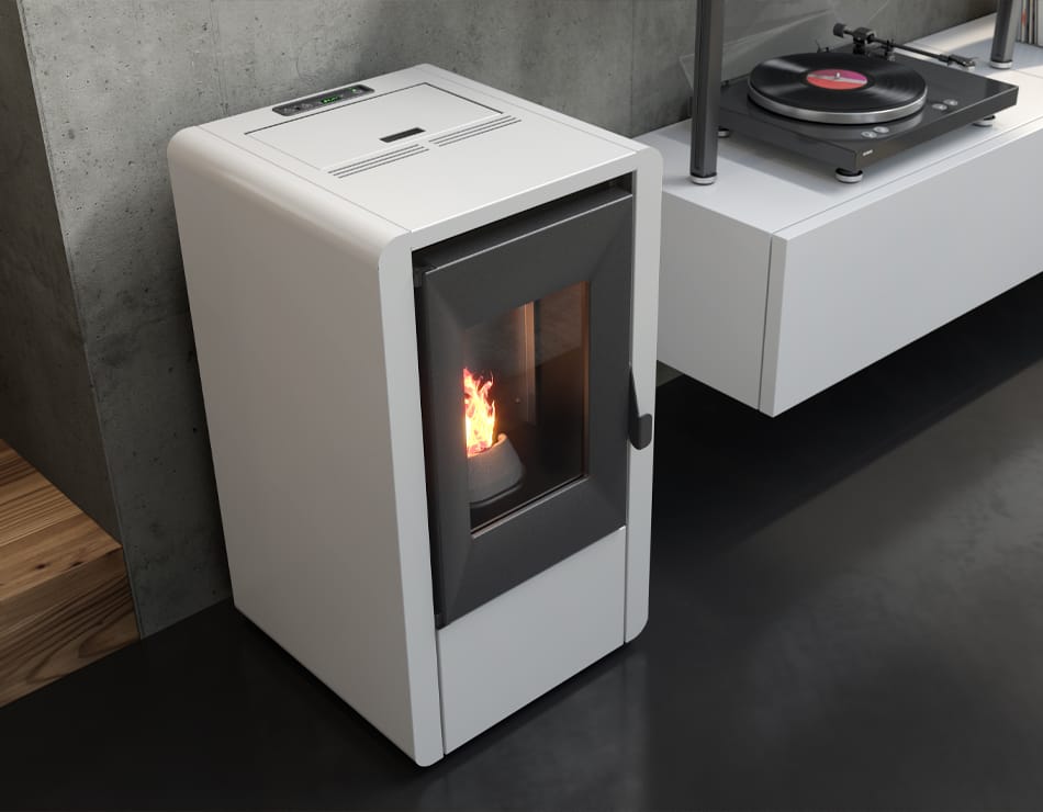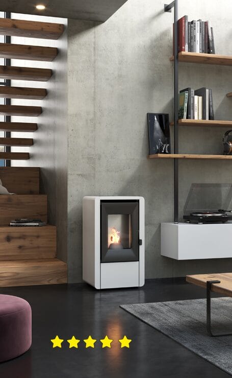 With its compact and refined design, Minnie is a 5-star certified pellet stove designed to deliver efficiency and comfort even in the most limited spaces.
