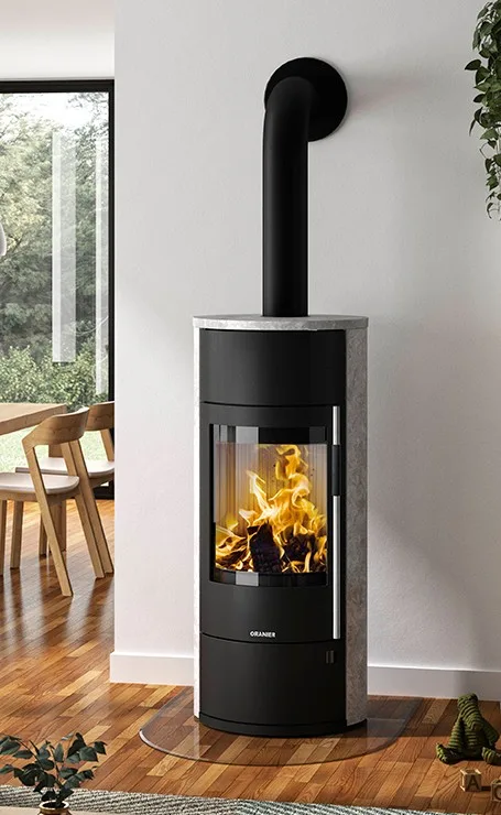With its integrated storage stones, the Polar Neo Vantage W+ stove becomes a sustainable source of heat. The heat energy released during the burning process charges the storage element and continues to give off heat to the room in which the stove is installed long after the fire has gone out. The triple air system installed in the Polar Neo Vantage W+ optimally doses the combustion air so that the stove can heat in an environmentally friendly, clean and efficient manner. In addition, the stove offers a practical wood storage compartment below the combustion chamber for convenient storage of firewood.
