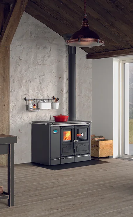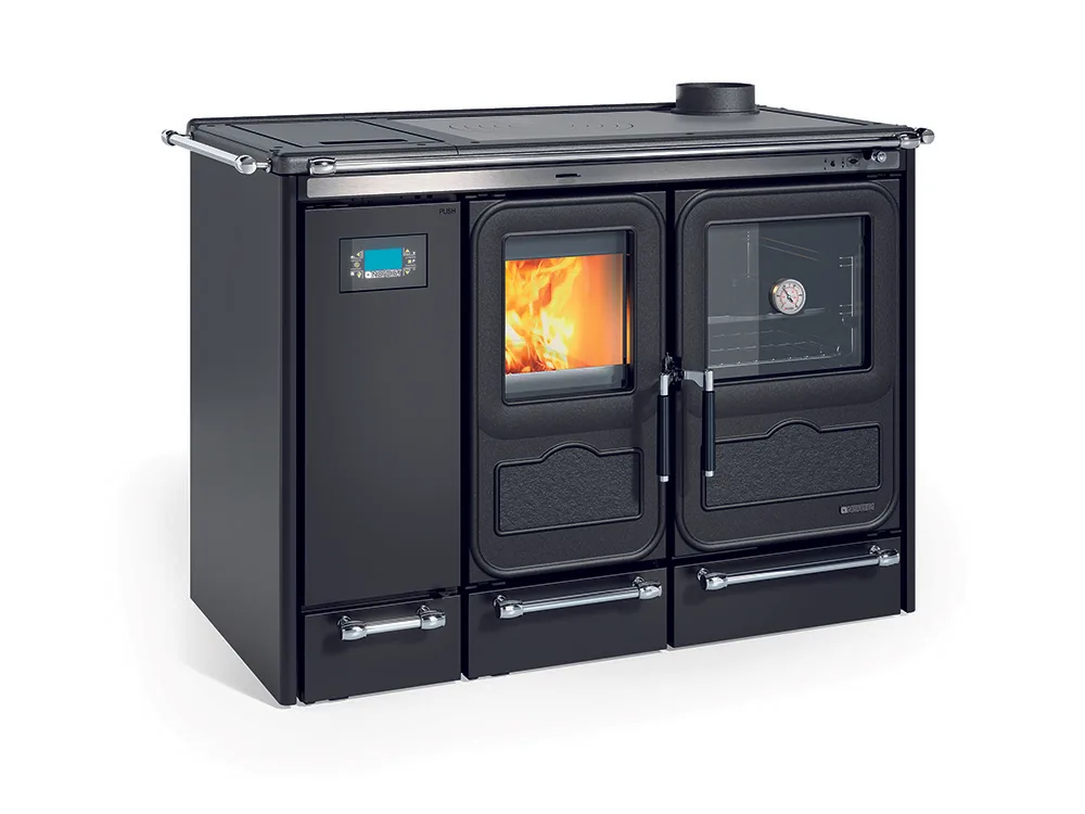 This model is designed to connect to your home’s hydronic heating system, efficiently and economically warming every room. At the same time, you can make use of its large polished cast iron cooking plate and the 51-liter oven, which features an interior light controlled via the display.