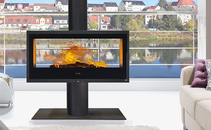 A double-sided, triple combustion wood stove with an efficiency of 80.8%. The two…