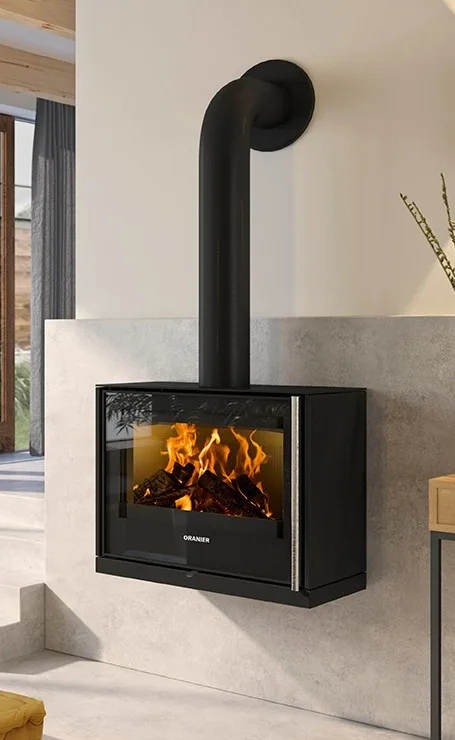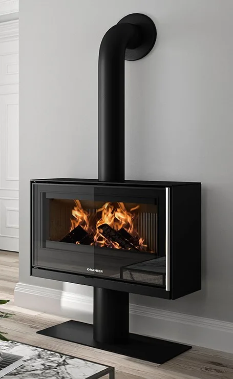 The Ziva stove immediately catches the eye with its angular, unusual design. The panoramic front pane covers almost the entire front of the stove, providing a great view of the flames. Furthermore, the Ziva is a real chameleon and can be adapted to any need thanks to the four different installation options: it is suitable for wall mounting, installation on a stand, on beech wood or metal feet or on a box with a practical wood compartment.