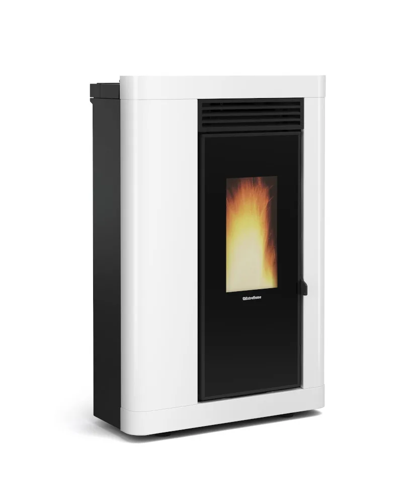 Infine, le diverse finiture colore disponibili, bianco, nero e tortora, si adattano ad ogni contesto abitativo e grazie all’ampia porta fuoco in vetro ceramico, lo spettacolo del fuoco è garantito.
