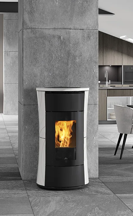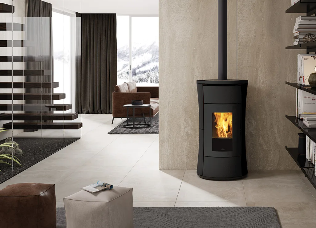 Stufe a pellet canalizzabili, in due diverse potenze, dall’elegante design a clessidra…