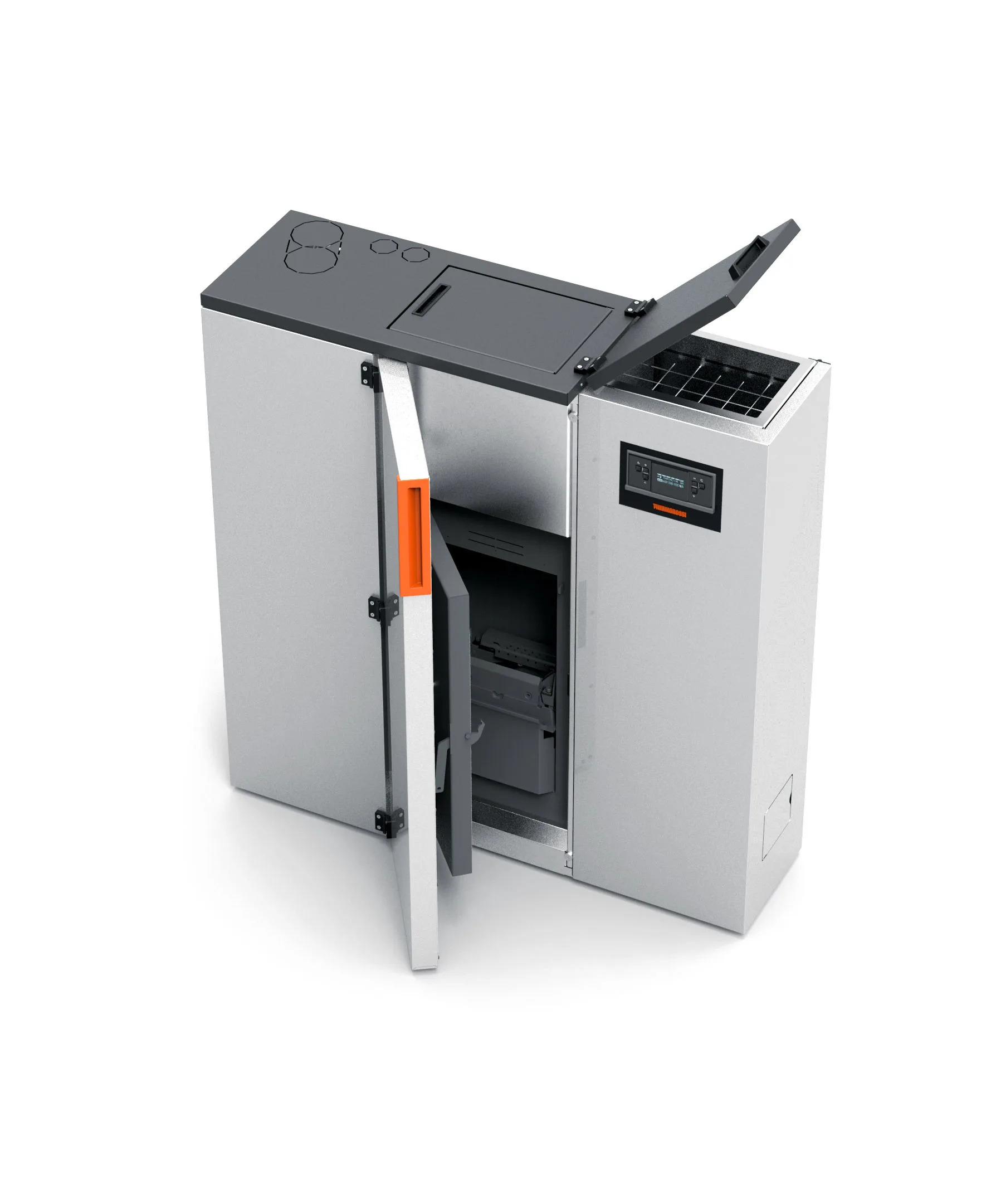 Caldaia a pellet salvaspazio, grazie alla sua ridotta profondità (solo 40 cm) e a…
