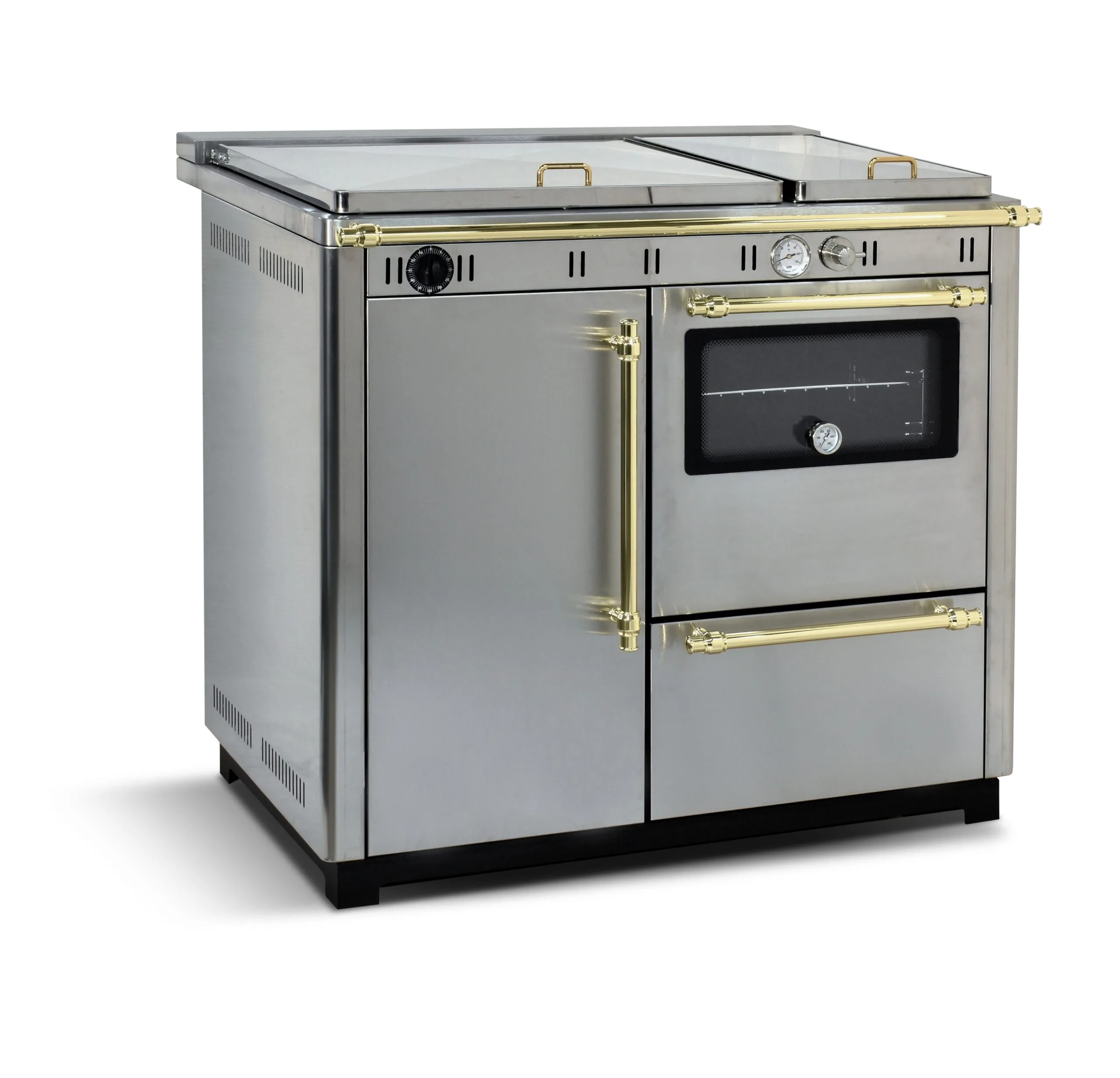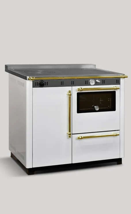CUKI 95 è una termocucina in acciaio per il riscaldamento civile a legna: collegata all’impianto di idraulico vi riscalda tutta la casa oltre a cucinare sia sul piano cottura in ghisa che grazie all’ampio forno. Una termocucina senza tempo, ispirata da una lunga tradizione che si rinnova continuamente. Proposta in 5 modelli trattati con smalto e 1 in acciaio inox satinato, a garanzia di lunga durata.