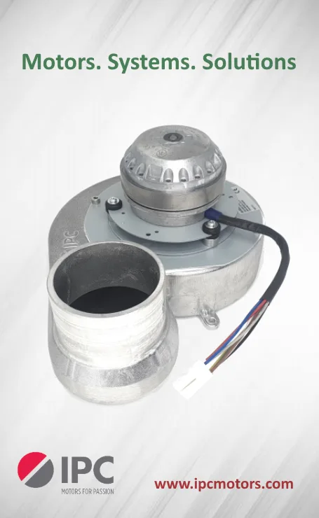 IPC presenta il suo nuovo estrattore fumi con motore a rotore esterno; il nuovo design è stato specificamente progettato per le esigenze dei produttori di sistemi di riscaldamento a pellet-biomassa.