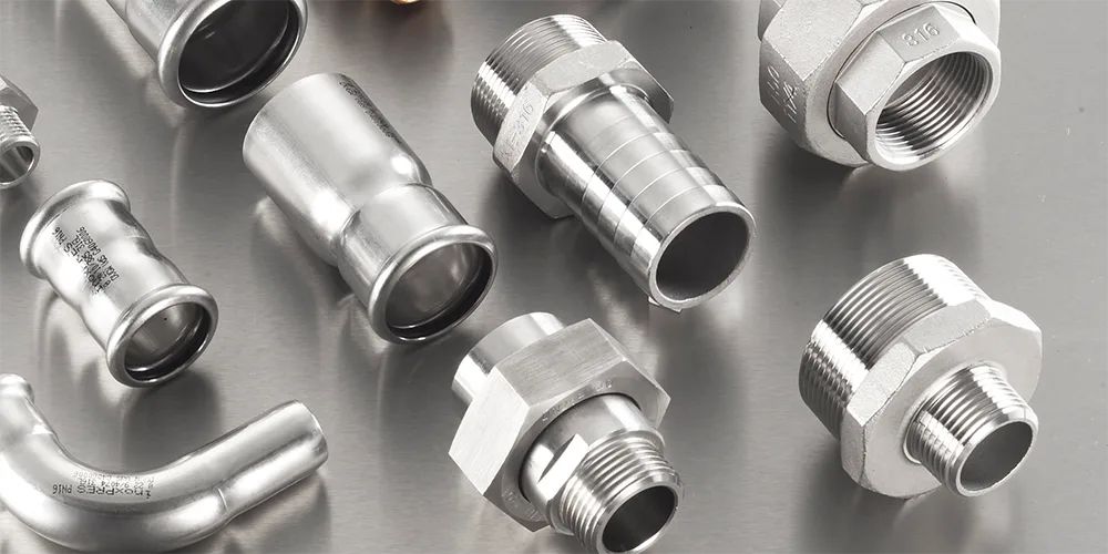 Gamma di raccordi filettati GAS in acciaio inox AISI 304 e 316. Elevata resistenza alla corrosione, finiture curate e precisione nei filetti.