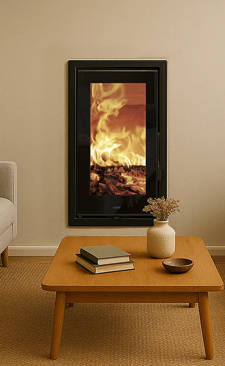 Inserto a legna 5 stelle, a doppia combustione con un rendimento dell’86%. La struttura è in acciaio e per la porta è stato scelto il fine vetro serigrafato. Il focolare è rivestito in vermiculite. Il suo design è molto particolare, grazie a una camera di combustione sviluppata in verticale. È dotato di sistema vetro pulito. Può riscaldare un’area fino a 230m3. Soddisfa i requisiti EcoDesign 2022 in merito a emissioni e rendimento.