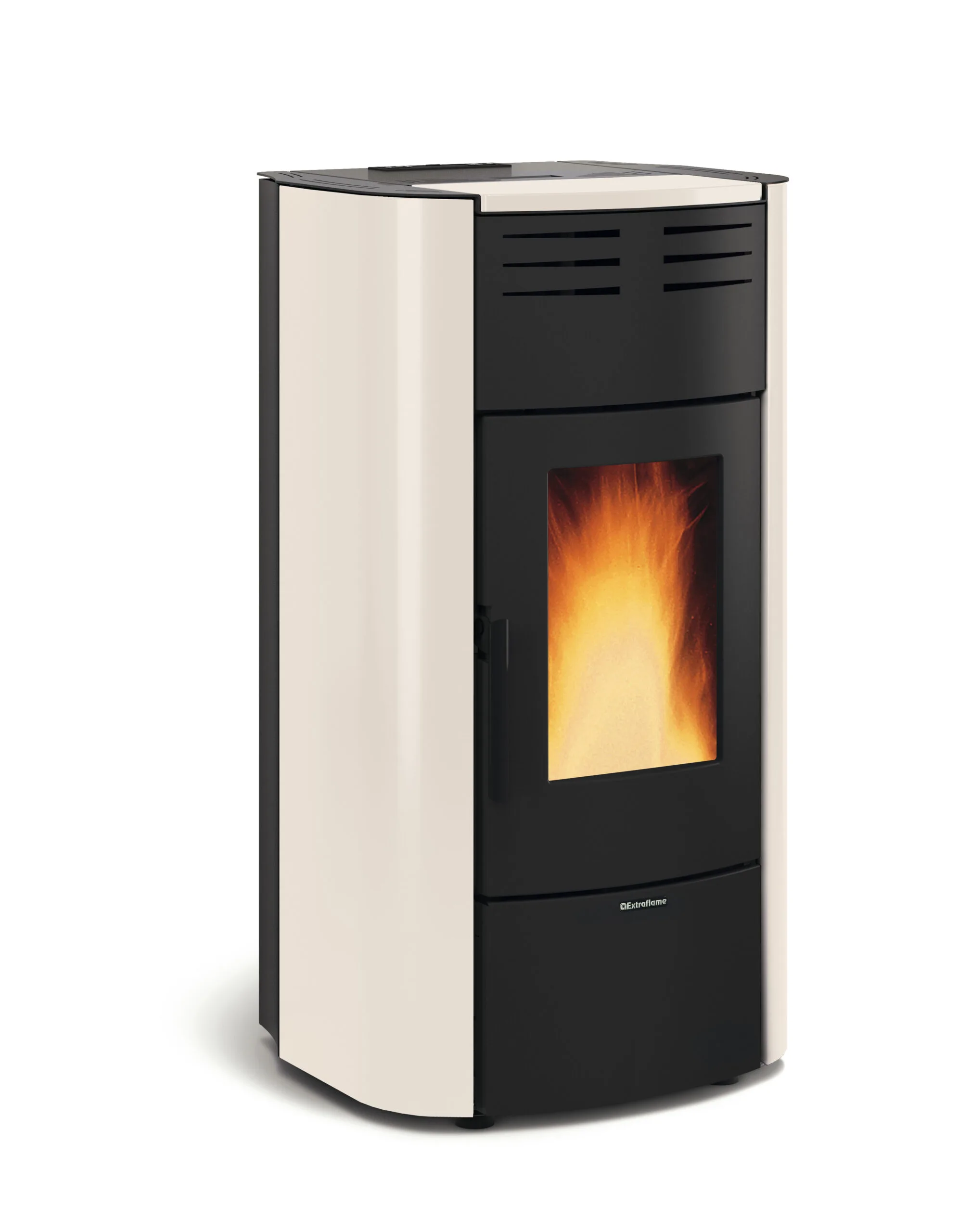 Le sue prestazioni sono rese ancora più efficienti dalla candeletta di accensione in ceramica e vengono ottimizzate grazie anche all’efficiente circolatore PWM e alle numerose sonde di rilevamento delle prestazioni. Il rivestimento in acciaio è disponibile nelle finiture Avorio e Grigio Luce.